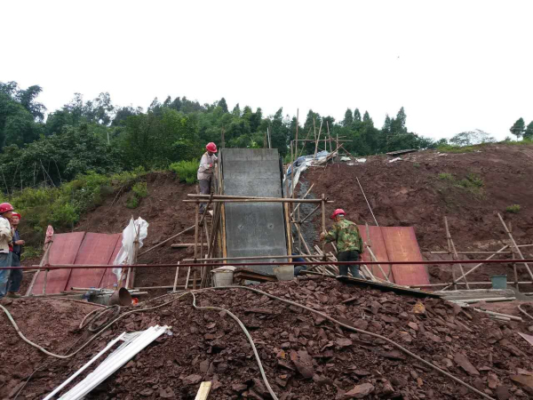 在长宁县铜锣乡龙峰村的公路上,崩塌的石块正在落下。最近的一次滑落体崩塌方量约50立方米,情况十分紧急。202队地灾处作为长宁县国土资源局的技术支撑单位,在长宁县地质灾害隐患点排查工作中对该隐患点进行了调查,并将其纳入新的地质灾害隐患点。2017年8月中旬,我们的治理工作正式开始。今天,坡面修整和危岩清方已完成,现正在进行主动防护网、危岩点锚、锚喷支护的工作。工作的繁重,国庆的休息是没有了。但地灾处负责人吴晗却骄傲地告诉我们:"治理交给我们,你们安心出游!"