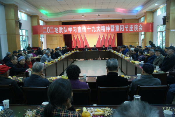 10月27日,202地质队组织在队近100名离退休职工欢聚俱乐部,以共同学习党的十九大精神为契机,欢度重阳节。会上,党委书记、队长谢兵代表队领导对离退休职工表示了节日的慰问,祝福老人们节日快乐。同时,谢兵队长由衷地希望每一位离退休职工都能够安度晚年,健康开心过好每一天,在生活中传递正能量,为子女们腾出时间精力在工作中拼搏与奋斗,就是身体力行地践行党的十九大精神的学习与宣传。