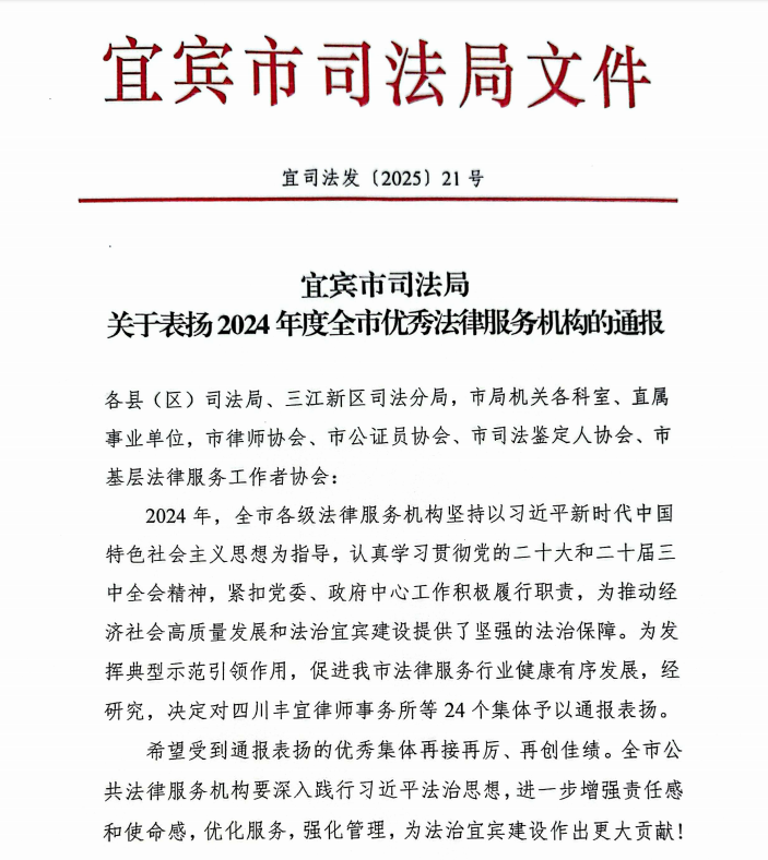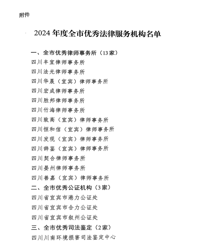 日前,宜宾市司法局经研究同意后,通报表扬了一批政治合格、业务精良、诚信执业、乐于奉献的“优秀法律服务机构”。其中,全市共有两家获“优秀司法鉴定机构”,四川川南环境损害司法鉴定中心名列其中。