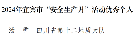 近日,宜宾市安全生产委员对2025年“安全生产月”活动中表现突出的优秀组织单位、优秀单位和优秀个人予以通报表扬,四川省第十二地质大队凭借扎实有效的活动开展和显著成效,荣获“优秀单位”称号,队职工汤雪获评“优秀个人”。