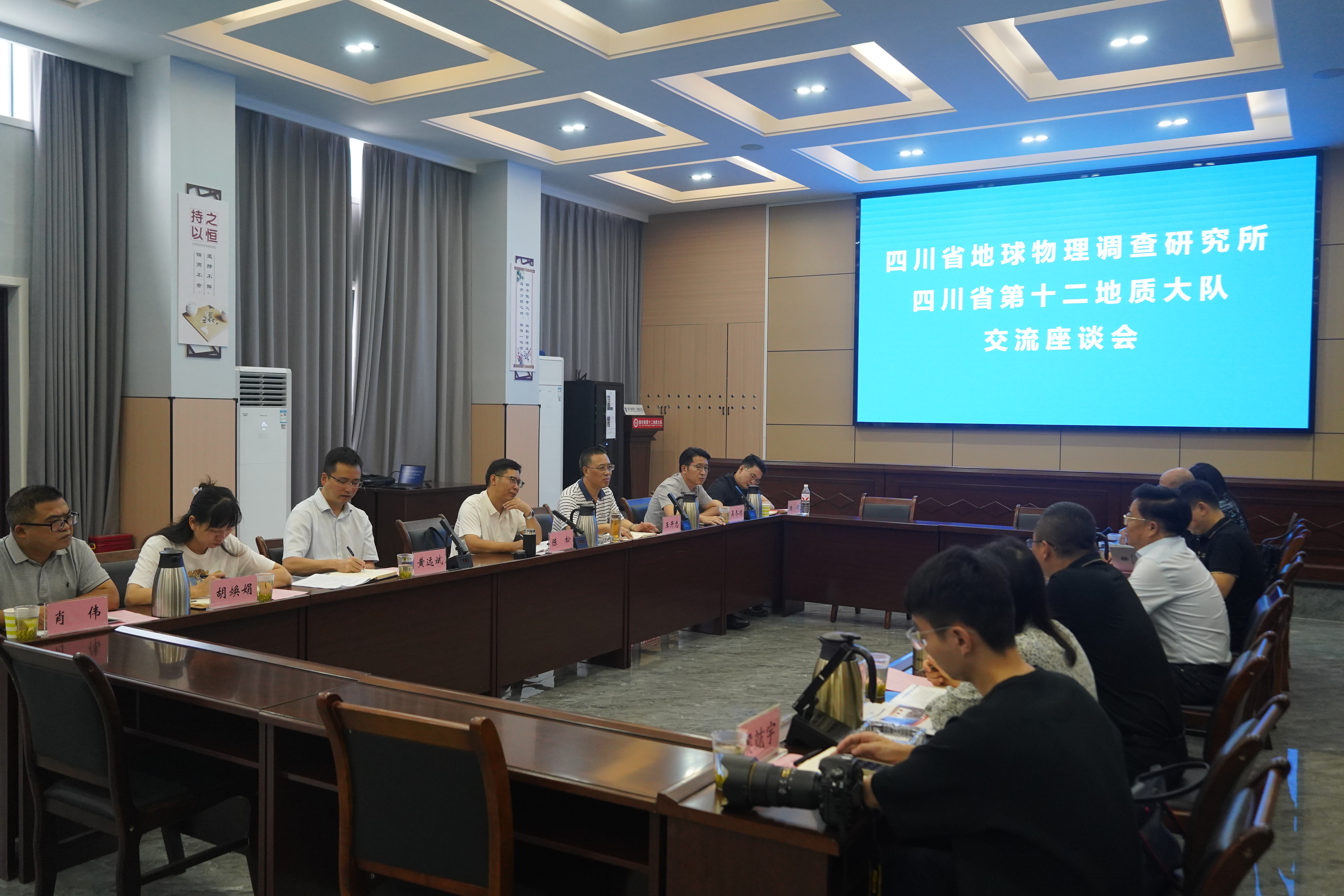 10月11日,四川省地球物理调查研究所党委书记、所长邓太平一行到我队开展交流座谈,双方旨在加强地勘行业兄弟单位协作,共探发展新路径,实现合作共赢。十二大队队长、党委副书记陈松主持召开会议。四川省地球物理调查研究所副所长岳云宝、副所长孙波。十二大队党委书记、副队长王开忠,副队长黄远斌及双方相关职能科室负责人参会。