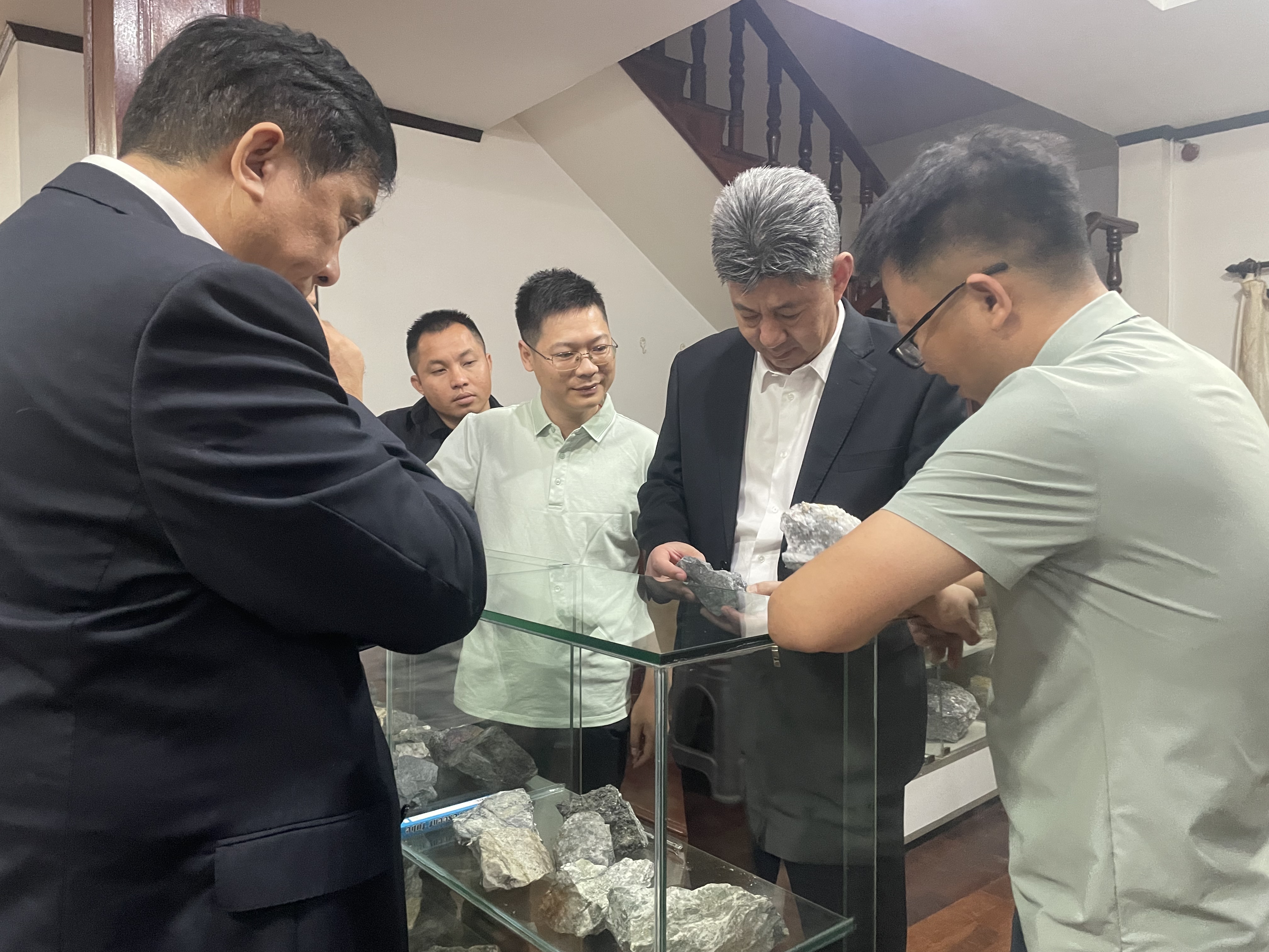 苏金明一行参观了老挝岩矿石标本陈列,对标本的代表性与丰富性予以高度赞赏,充分认可我队深耕老挝地质找矿市场的坚守与成效。